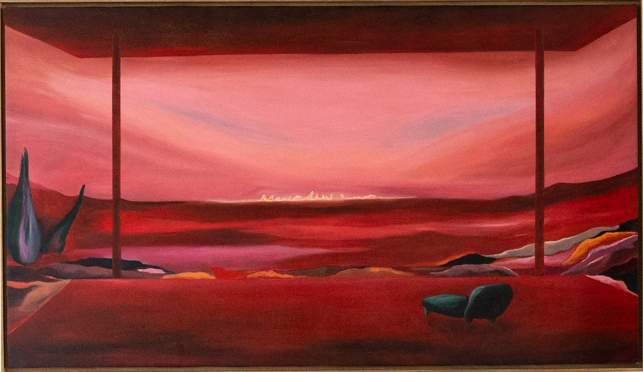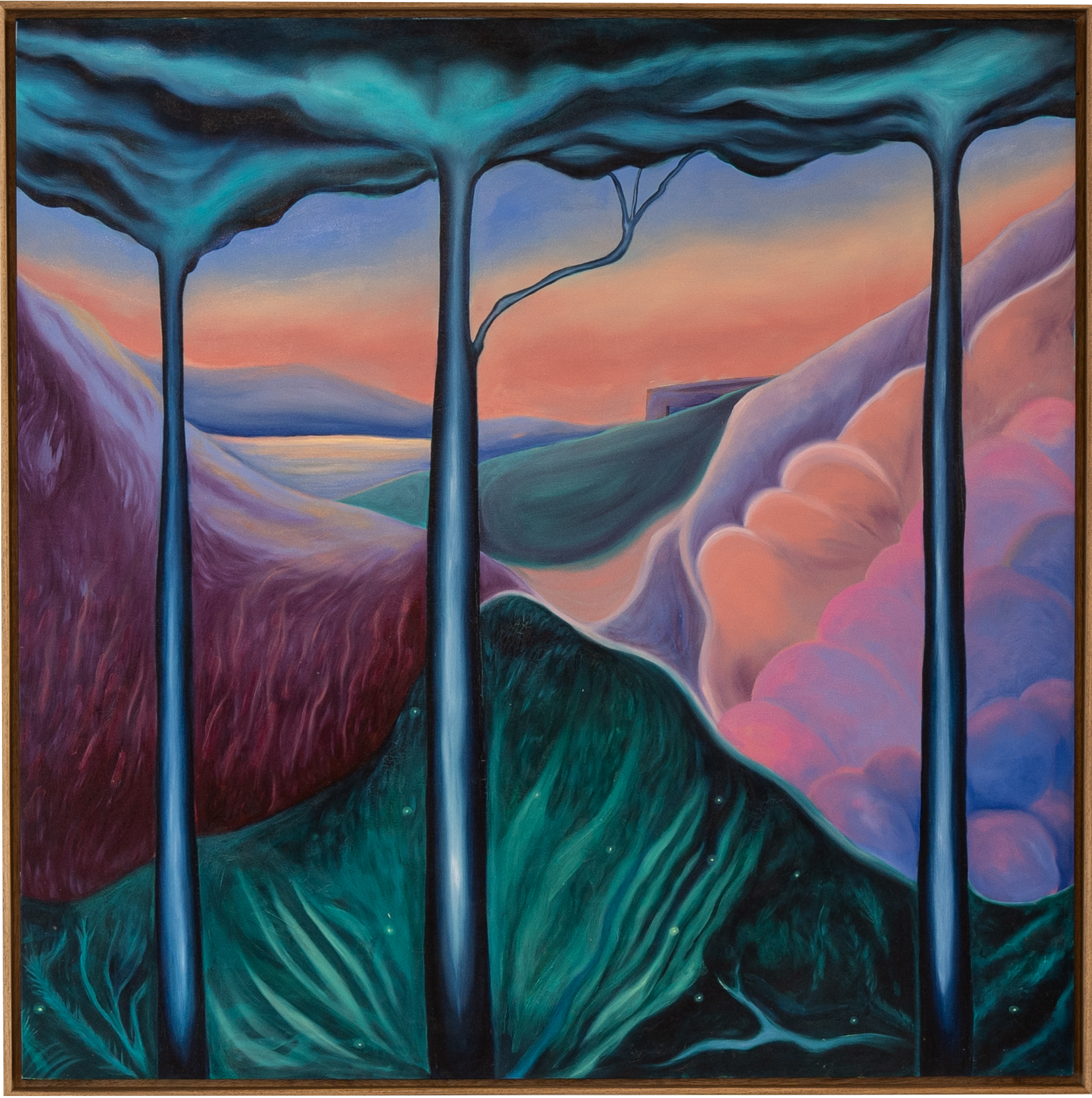 Formée initialement comme architecte et ayant une expérience dans le cinéma d'animation, son parcours lui permet de remettre en question les perspectives sur la toile, en jouant avec les profondeurs et en ajoutant plusieurs couches de tons et de couleurs.